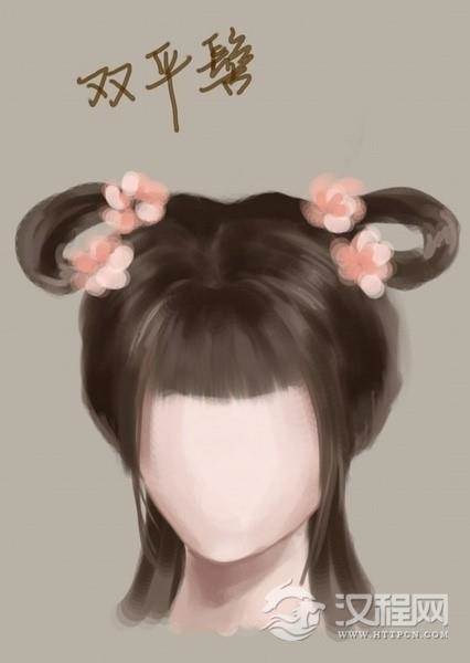 双平髻的编法,多用于宫廷侍女、丫环侍婢或未成年之少女。从秦开始,延续及近代,其中最典型的是双丫髻及双挂髻。