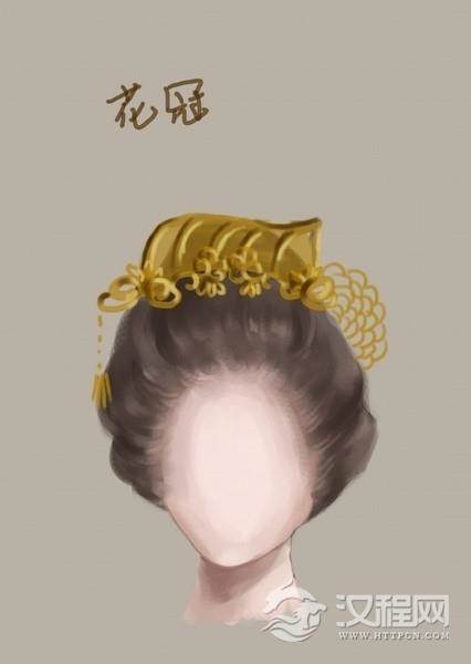 冠小仅束髻,冠上多有花饰,在明代仕女多用。