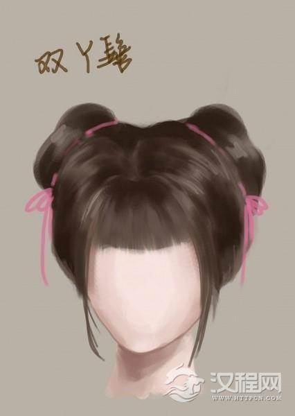 双丫髻是双挂式中最常见之发式,前额外负担多饰有垂发,俗称刘海,一般多用于侍婢丫环。