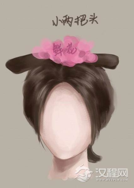 垂鬟分肖髻,多是未出室少女的发式,据《国宪家猷》记载:“汉明帝令宫人梳百花分肖髻。”在唐代常作为处女发式标志。
