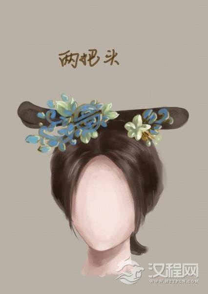 为儿童或未婚少女之发式,其梳编法是将发平分两股,对称系结成两大椎,分置于头顶两侧,并在髻中引出一小绺头发。使其自然垂下。