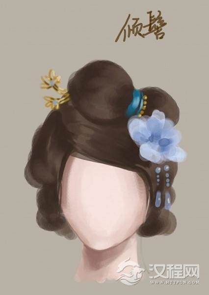 倾髻其梳编法是将发分股结椎、倾斜结束置于头前或头侧,在仕女画中颇为多见。据《晋书》记载:“太元中公主妇女必缓鬓,倾髻以为盛饰。”