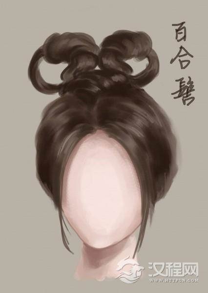 百合髻的梳编法是净发分股盘结,并合叠于头顶。梳百合式的壮丽!