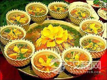 “国色朝酣酒,天香夜袭衣”,洛阳是著名的牡丹之都,人们将对牡丹的喜爱融人假燕菜的烹制,牡丹的华贵和吉祥更使此菜形色生辉。洛阳假燕菜经众多厨师调制,到今天其制作更臻完善。其做法如下:
