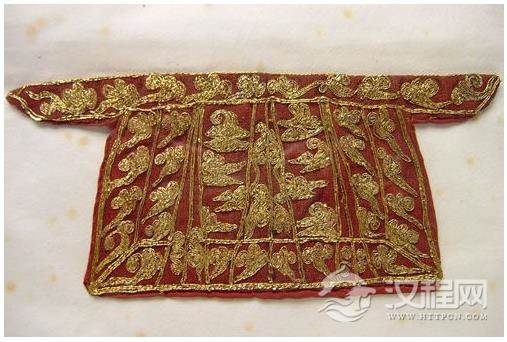 现代人对唐代诗人在诗中所提到的“蹙金绣”、“盘金绒”之类丝织品为何物并不明白,认为那只是诗人浪漫的想象。但实际上,这些曾经在诗句中提到过的印花描金、贴金、捻金、织金等丝织绣品都在法门寺地宫中现身了。其中最为有名的“织金锦”更是让人大开眼界。地宫中的这块“织金锦”,是现存最早的一块用金丝制成的锦缎。这种金丝与通常概念上的金丝有所不同,它的直径只有0.1毫米左右,比头发丝还细,是以丝线为芯,以金线一圈圈缠绕而成,一米长的金丝要绕3000多圈。武则天供养的绣裙就是用这种织品制成的,为古今丝织法中一绝。而这块“织金锦”所使用的刺绣针法,是用绣线将较粗的双线拼成花纹图案固定在绣底上,技术要求非常高。加之金线制作不易,价格非常昂贵,所以即使是在唐代,这种绣品都是极为少见的,而法门寺却存有这么珍贵的丝织品,可见当时人对佛教信仰之虔诚,出手之阔绰。