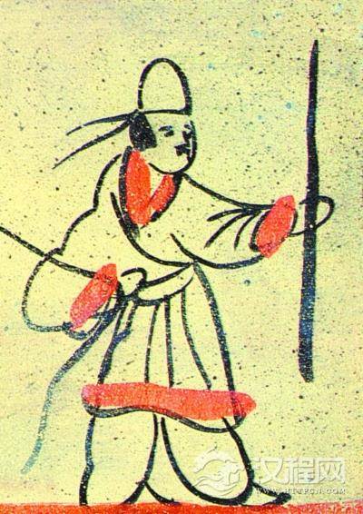 戴白帢的男子(甘肃嘉峪关魏晋墓砖画像)。
