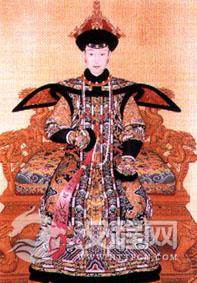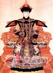 常服样式也比满族贵妇服饰要宽松一些,特别是衣袖及下摆。下图为穿常服的皇太后。