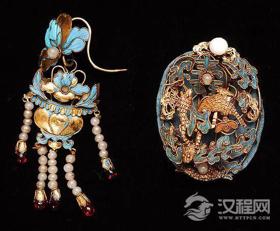 虽然没有宝石的炫亮华丽,但是点翠制成的饰物,自有一种艳丽拙朴之美,体现了东方饰品注重细节,讲求工艺的精细、含蓄之美。用点翠工艺制作出的首饰,光泽感好,色彩艳丽,而且永不褪色。