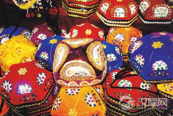 原是塔什干流行的一种花帽,现在是对格刺绣几何形纹花帽的通称,深受广大男女青年所喜爱,一般色彩对比强烈,火红闪耀如盛开的花丛。