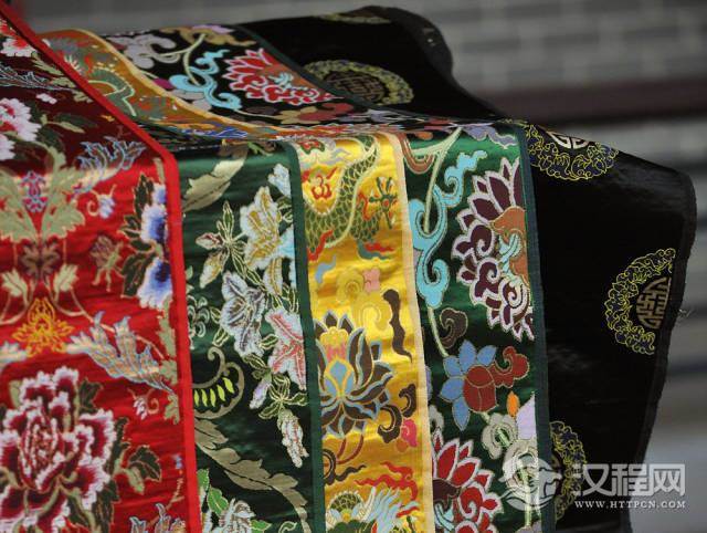 特点:大量使用金线、逐花异色、质地坚实、花纹浑厚优美、色彩浓艳庄重等