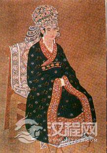 宋代皇后礼服——戴龙凤珠翠冠、穿礼服的皇后。这种服饰是宋代皇后最贵重的服饰,平时很少穿着,只在受皇帝册封或祭祀典礼时服用。其制为深清色、五彩翟纹。领、袖、裾都红色云龙纹样的镶缘。穿着这种服装,必须戴凤冠,内穿青纱中单,腰饰深青蔽膝。另挂白玉双佩及玉绶环等饰物,下穿青袜青舄。(南薰殿旧藏《历代帝王像》).