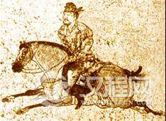 胡服流行于元、天宝年间。它的特征是翻领、对巾、窄袖。在陕西等地的墓中壁画有大量反映。凡穿胡服的妇女,腰间都系有革带,革带上原来是北方民族的装饰,在魏晋时传入中原。到了唐代,曾一度定为文武官员必佩之物,上面悬挂算袋、刀子等七件物品,俗称“蹀躞七事”。上图为裹幞头、穿翻领胡服的男子.