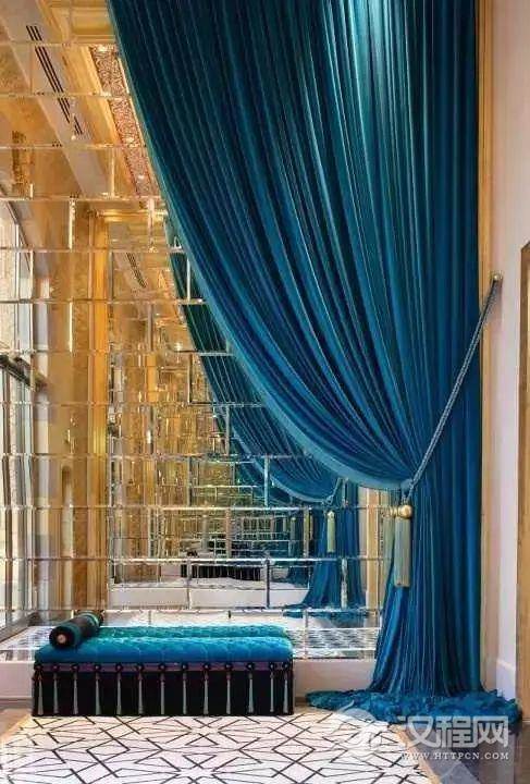 以孔雀蓝的家具、窗帘等来点缀空间,好比是点睛之笔。一抹孔雀蓝,使整个空间顿添生气。