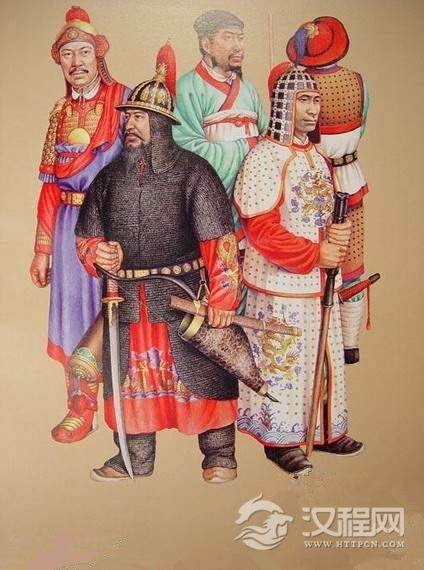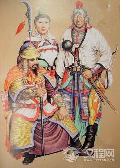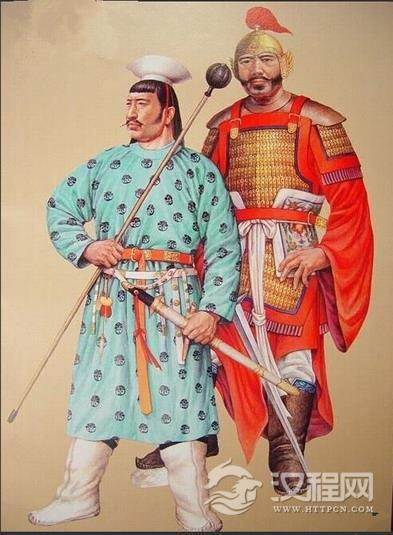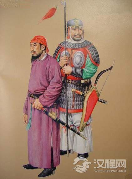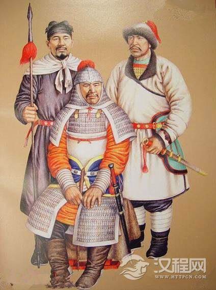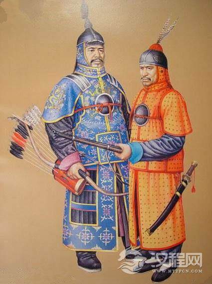 17、元代武士復原圖。元代(西元1279年-1368年)蒙古主力軍全部是騎兵,組織嚴密、裝備精良,而且還配有火器,尤為突出的是甲胄。甲身全部用網甲製成,外表用銅鐵絲綴滿甲片,內層用牛皮為襯,製作十分精巧。元代的戎服在建國之初無論將帥士兵,只有本民族的服飾-質孫服。蒙古式戎服的冠是帽和笠。