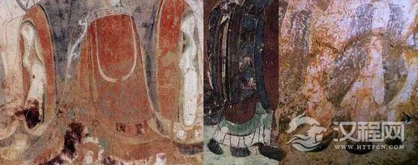 因为同类礼服的外形是基本一致的,所以武德令制定之初袆衣的具体外形,可以参照初唐以及隋的大量礼服形象推知。领型为高交领,为北朝及初唐女礼服形态;衣裳的下缘加以褶皱边锯,并在两侧上提以便行走,这在晋唐宋的礼服中是普遍做法,故加之。衣缘未提及,宋明均为朱色衣缘,因唐代制度未说明,暂不做推定。