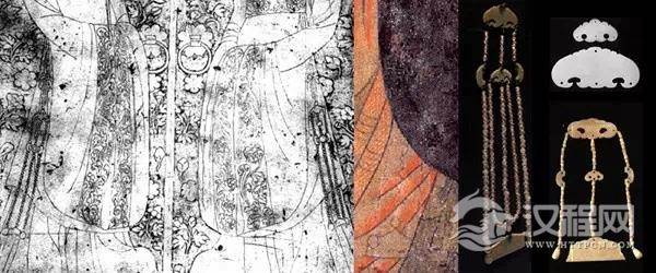 懿德太子墓线刻女官礼服玉佩、历代帝王图玉佩、唐代出土玉佩