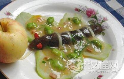 身价高贵的海参,食用的历史并不太久。据目前所见最早者,是元代贾铭著的《饮食须知》:“海参:味甘咸,性寒滑,患泄泻痢下者勿食。”这里仅言其性,未知其食法。直到清代时,海参入馔美食才日益增多。如孔府名馔“竹影海参”的传闻就是其中之一。相传孔子第七十六代孙“衍圣公”孔令贻一生酷爱书法,对画竹也颇有兴趣,时常约一些文人作诗绘画。一次,孔令贻聚朋饮酒时,厨师用鸡脯肉剁泥制成竹节形,加入海参,冲入三套汤上席(此菜原名“清汤海参”)。主人即景生情曰:何不以“竹影”为名。遂易其名流传至今。以后海参菜成为“满汉全席”中的名菜。继而又有“海参席”的出现。不过这种海参席,并非席中菜皆海参,而是以海参菜为主菜而得名的。