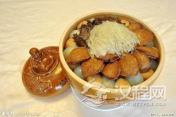 而且据称,这道佛跳墙前后共改换过三个菜名。刚开始叫“坛烧八宝”,后来叫“福寿全”,再后来才叫“佛跳墙”。至于从“福寿全”改为“佛跳墙”。佛跳墙食物多样,软糯脆嫩,汤浓鲜美,味中有味,回味无穷,营养丰富,并能明目养颜、活血舒筋、滋阴补身、增进食欲。