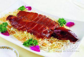 在成都,有“南路鸭子北路鸡”之说。成都以南多水,北部多山,故南路鸭肥,北路鸡嫩。南路鸭经厨师制作后,皮酥肉嫩,味道鲜美,还有浓厚的特殊香。此菜就是选用成都南路鸭,用红茶、白糖、绍酒、葱、姜、桂皮、八角等十几种原料精心制作,再经樟木屑及树叶熏烤而成,所以被称作为樟茶鸭子。其皮酥肉嫩,色泽红润,味道鲜美,具有特殊的樟茶香味。