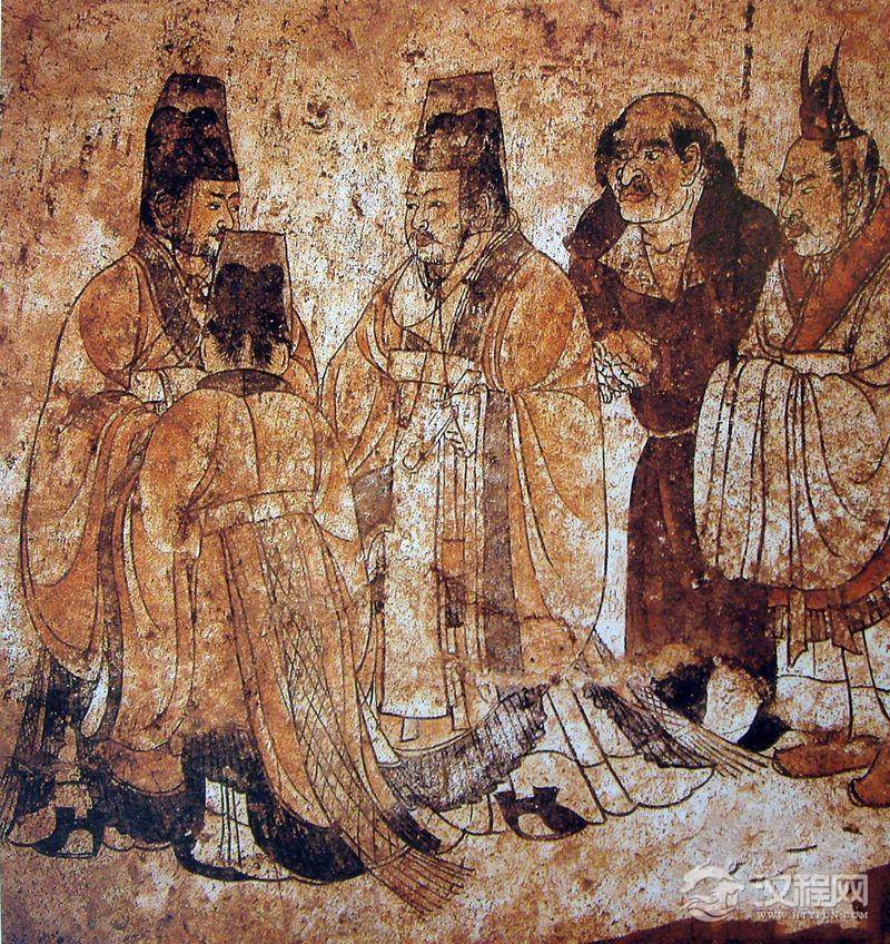 陕西省乾县乾陵陪葬墓张怀太子李贤墓墓道东壁壁画唐景云二年礼宾图