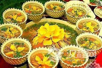 洛阳是九朝古都.是闻名遐尔的历史文化名城,洛阳所特有的“洛阳水席”,也以它所蕴含的悠久的历史文化积淀而驰誉四方。已有上千年历史的“水席”,与其他著名的如“满汉全席”、“全羊席”、“鱼翅席”不一样,整个宴席由24道菜肴构成,除八个冷拼盘的酒菜外,其余八碗、四件和四个压桌菜,件件有水,样样带汤,色味各异、别具一格,故称为“水席”。
