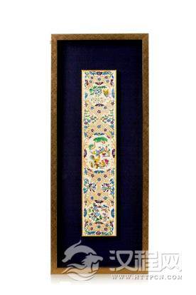 袖口,取自清代女式服衣袖处,通常是一对,构图狭长居多,是整件服装的点睛之笔。图案通常描述的是各色花儿竞相开放,果实累累,时而雍容华贵,时而清新淡雅,寄托了古代女子对美好生活的期待和向往。袖口在藏品中能收齐完整一对并保持品相完好实属不易,是难得的收藏佳品。