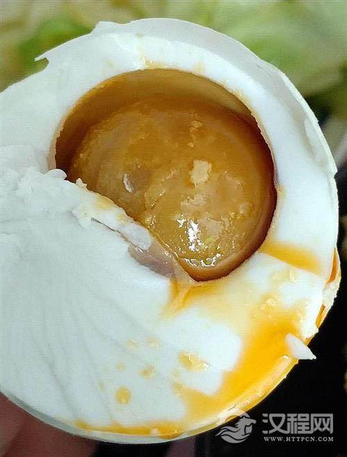 剥蛋壳。剥蛋壳就是煮熟后剥开蛋壳,质量上乘的咸鸭蛋黄白分明,蛋白洁白凝炼,咸味适中。咸鸭蛋,油多味美,用筷子一挑便有黄油冒出,蛋黄质地细沙,分为一层一层的,由浅至深,越往蛋心越红,中间无硬心,味道鲜美。而质量差的咸鸭蛋蛋白较烂、腐腻、咸味较大,最好不要食用。