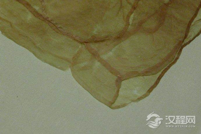此件襌衣的组织结构为平纹交织,其透空率一般为75%左右。制织素纱所用原料的纤度较细,表明当时的蚕桑丝品种和生丝品质都很好,缫丝织造技术也已发展到相当高的水平。素纱,一般为未经染色的纱织物。这件“襌衣”如果除去袖口和领口较重的边缘,重量只有25克左右,折叠后甚至可以放入火柴盒中。它也是西汉纱织水平的代表作,更是楚汉文化的骄傲。