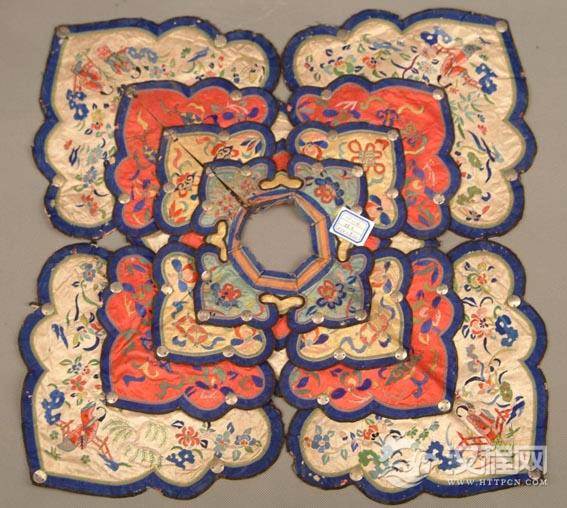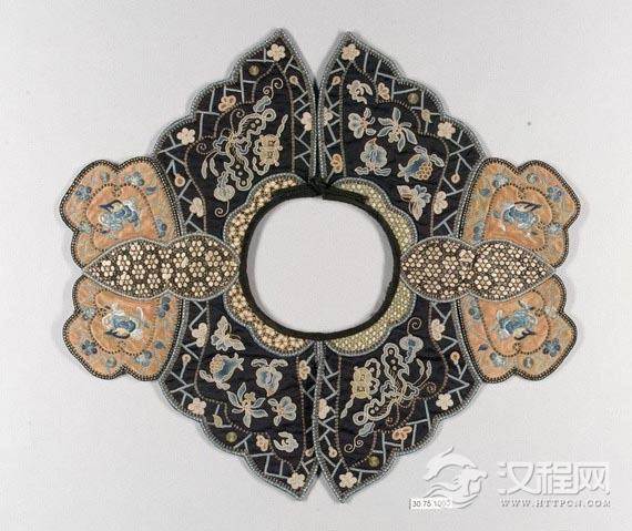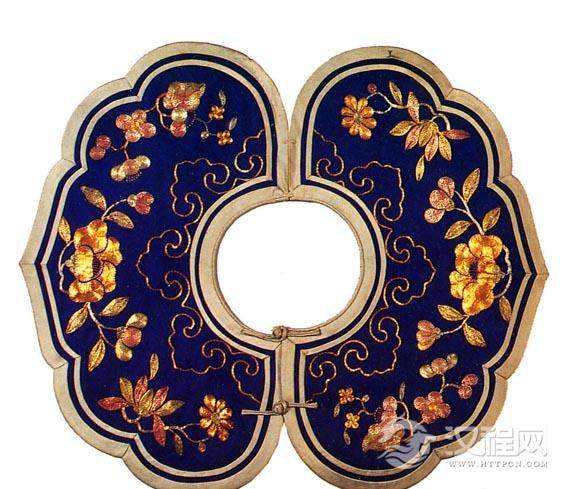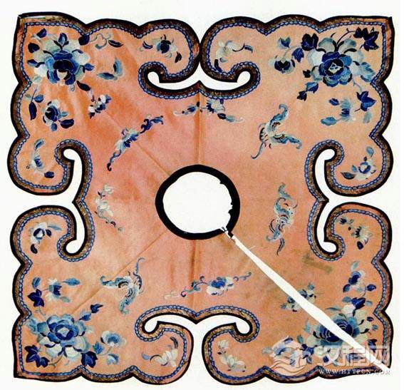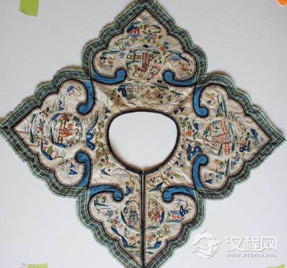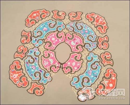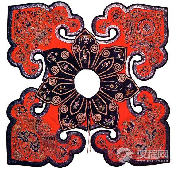 云肩,常用四方四合云纹装饰,并多以彩锦绣制而成,晔如雨后云霞映日,晴空散彩虹,故称之谓:云肩。