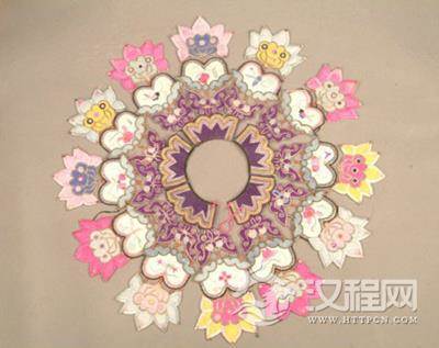 图案虽有护身符作用,但不同于道教驱鬼召神的“符 ”,更不是调兵遣将的“虎符”遗风;每件云肩都各自有一个主题,都离不开人们对爱情、婚姻的美好祝愿。