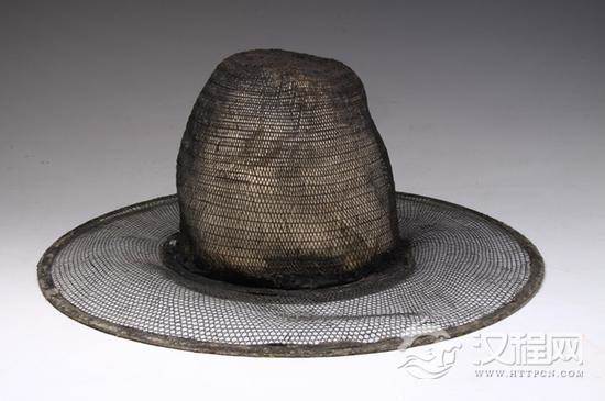 “笠帽”在商周时期已出现,它的发明自然与遮阳挡雨有关,大的帽檐既可以挡雨,又可在阳光炙热的时候遮阳,形制多为大檐尖顶,也有圆顶。中国古代传统的笠帽材料很多,有用竹篾、蒲草、苎麻等编制的,随着时间的推移,仿其形制的多种质地的笠帽逐渐涌现,作为头上装饰,从单纯的实用性向美观发展,如朱檀墓出土的朱漆加纻胎方顶笠帽。墓中出土的宽檐笠帽有圆顶和方顶两种,质地分别是竹篾和加纻胎。其中,竹编圆顶笠帽两件,一件为圆顶,圆口,宽圆平檐;帽筒与帽檐的边缘用铁丝做骨架支撑,均为竹篾编制,分别为菱形和六边形网格状,内外髹黑漆,外裹纱布已朽尽。另一件仅余帽筒,宽圆平檐已腐朽,仅剩外圈铁丝骨架。方顶为朱漆加纻方顶笠帽,方形小平顶;帽筒分四楞,宽圆平沿;帽筒和帽檐分开制作,内侧附织物连接,现已断裂;夹纻胎,内外髹朱漆,大漆漆色艳丽。