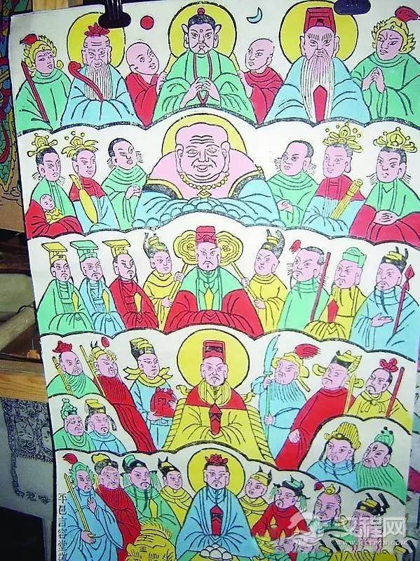平遥木版年画是封建社会人民朴素天真的信仰的载体,是一种民俗文化,多以神祇文化的 “神马画”“佛像画”“民间传说画”等形态出现,如:中堂画、门画、条屏画和灶龛画,以传统的水印方法印成,注重人物传神,讲究象征寓意,画面完整,具有晋中人文特征。