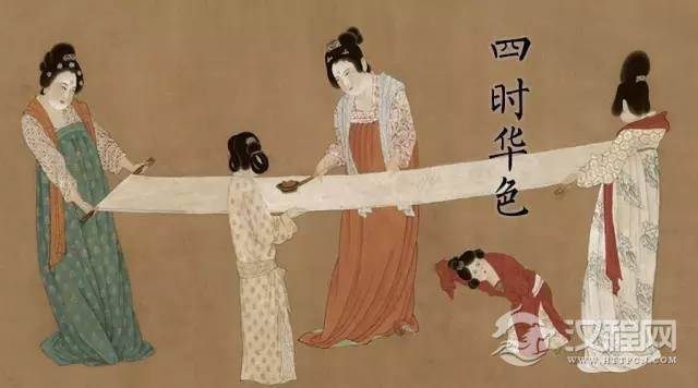 用傳統技法染得的色彩太多了,今天我們一時是難以掌握的。那麼我們可先認知這十種具有代表性的色彩:曲塵色,桃紅色,真紅色,梅紅色,石榴紅,海棠紅(胭脂雪),揉藍色,郁金色,鵝黃色,雪色。它們在皇后、在勞作的女子身上,在舞姬、花神的身上出現,按四季推移的時令更換,讚美著中國女子的美德,凝聚莊重的禮儀,體現天人合一的哲思,帶有美好詩意。