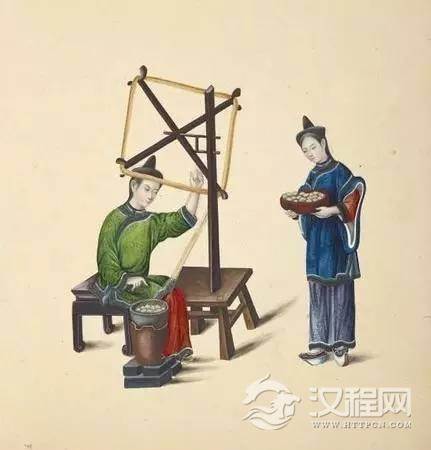 廣州通草畫 女子養蠶繅絲圖