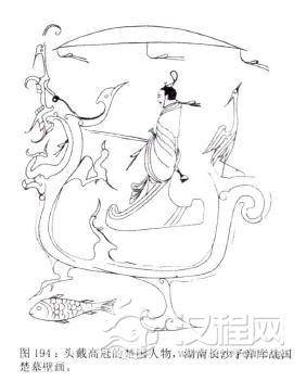 当时的贵族十分喜爱奇异的高冠。仅在记载中就有“大冠"、“元冠”、“高山冠",还有楚国的“切云冠”、“远游冠”、“通天冠”、齐国“巨冠”等。古人认为高冠能够通天,使自己具有与神一样的能力,在屈原《楚辞?九章?涉江》中“带长铗之陆离兮,冠切云之崔嵬(嵬音同“魏“)。”其中的“切云”就是楚国的“切云冠”。在湖南长沙子弹库战国楚墓壁画中,一男子头戴“8”字形高冠,颚下系着长缨。