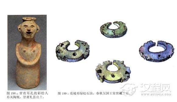 穿耳仍然流行。甘肃礼县春秋时代穿有耳孔的彩绘人形灰陶瓶,是这种古老风俗的写照。