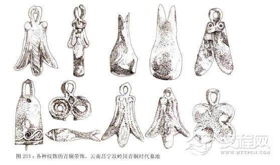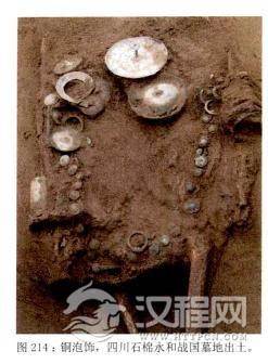 除此以外,一些地方还出现用青铜为小饰件组成的项链。在四川石棉永和战国墓地中,墓主的随葬品是用铜串珠和玛瑙珠串成的项链。其上身两侧从肩部至盆骨还有用大、小铜泡、球形,长方形及其它铜饰件连缀起来的饰品,别具一格。