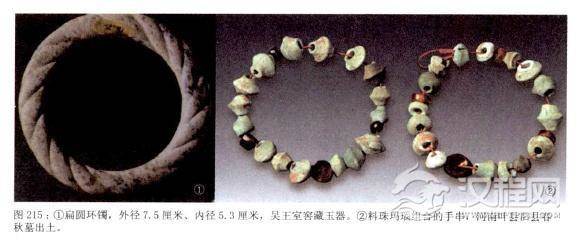 手串和玉镯仍是中原及长江以南地区的主要手上饰物。当时的玉镯仍多为扁圆环形。如吴王室窖藏玉器中出土的一件玉镯。河南叶县旧县出土的手串则仍具有西周贵族的风格。