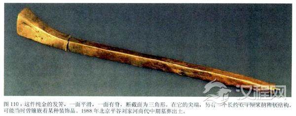 (1)种类丰富的发笄商代的发笄除了以前的竹、石、骨、玉外,还出现了铜质和金质的发笄。