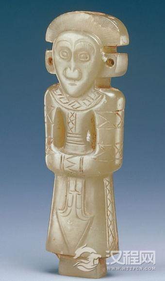提及服饰文化,不光有服还有饰,服和饰通常是搭配出现的。从殷代的出土玉石人形象可见殷代男女贵族身上还有佩玉的习惯,统治者甚至制定了一整套的玉佩制度,用以区别阶级和等级。商人玉佩的形式,一般是把玉雕琢成各种小动物形象,最常见的是一种玉鱼。