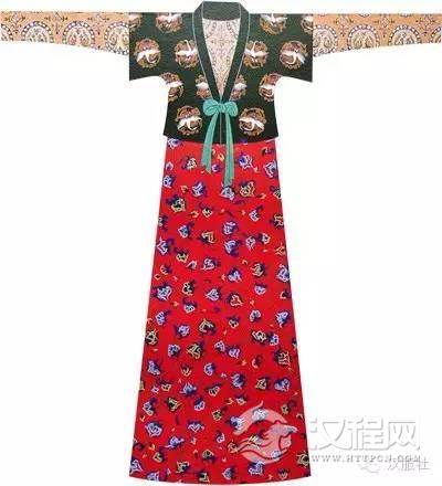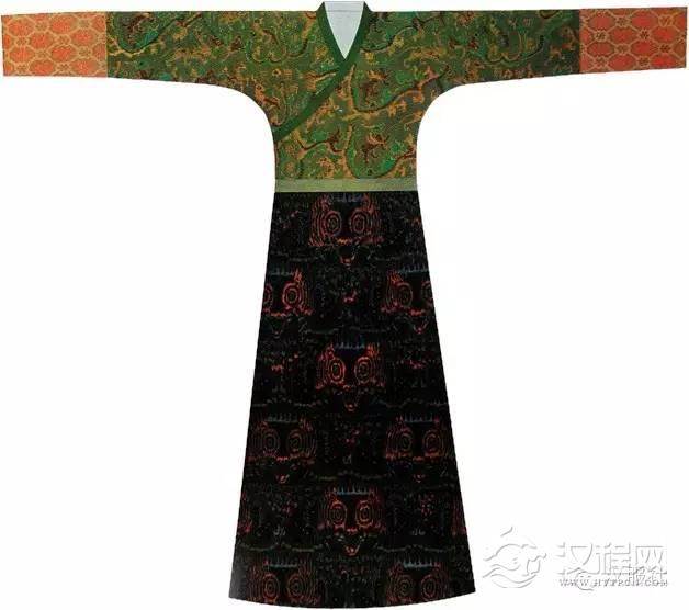 既然襦本身就有长有短,为什么又说襦是“短衣”呢?这是与“深衣”相对而言的。《礼记》有《深衣》篇,《经典释文》引郑玄注曰:“深衣者,连衣裳而纯之以采也。”(纯:镶衣边。)《深衣》说:“短毋见肤,长毋被土。”深衣长至踝部,襦与之相比,的确是短衣。郑玄注又说:“有表则谓之中衣,以素纯则曰长衣也。”这是说“深衣”一物而两名,就其外面还加罩衫而言,又叫中(内)衣。可见深衣是贴身穿的。(表:在外面再加一件衣服,素:没有颜色的帛。)