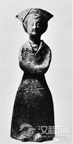 观察秦俑形象可知,秦时长襦和短襦的样式基本相似,都是右衽交领、曲裾,区别在于高级军吏俑的长襦为双重,中级以下一般武士的长襦则为单襦。除此之外,秦俑襦衣的衣领略有变化,除右衽交领之外,在1号兵马俑坑出土的武士俑中可看到几款特殊的衣领形式,即交领的一边向外翻卷,呈各种形状,有长三角形、小三角形、窄长条形,还有在内外衣领之间饰以围领的。