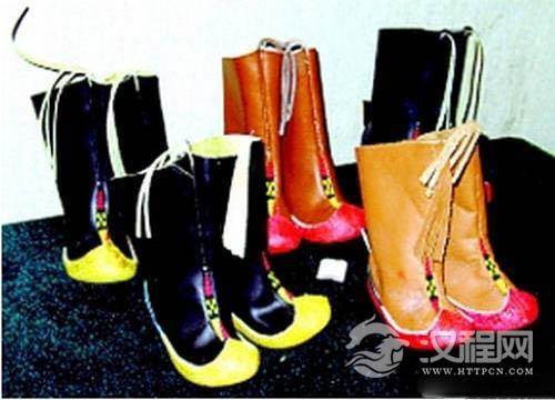 “靴”是长腰皮鞋,《隋书·礼仪志七》曰:“靴,胡履也”。西域各族穿靴的历史悠久,沿袭至今,适应新疆寒冷的气候,也是为骑马放牧便利而创制的一种鞋履。