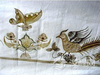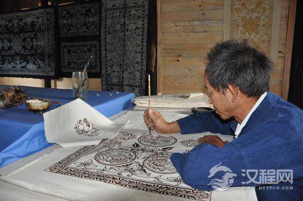 其次,选择的枫香油也颇为关键,枫香油主要由枫香树脂和牛油构成,其中枫香树脂是当地的枫香树所分泌的,一般是村民们上山亲手采集得来,采集枫香树脂的最好时间是每年的雨水季节,此时的枫香树生长繁茂,树脂分泌是一年最旺的时候。制作枫香油把枫香树脂投入到烧热的铁锅中,待枫香树脂完全溶解,就把同等分量的牛油用小木棍在锅内进行搅拌,使两者充分的溶解,相互渗透,看似简单的搅拌过程,实则牛油的加入使枫香树脂增加了韧性。这样在染色后便于脱去油脂。