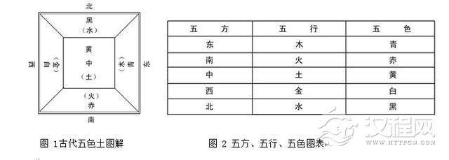 西周时期形成的中国古代色彩理论“五色学说”,在春秋战国时期得到进一步的发展。为了维护封建制社会的阶级利益,战国时期的哲学家、思想家,阴阳学家们,将起始于商周时期的具有原始唯物观的“五色学说”(五色、五行、五方为一体的色彩理论),与《周易——阴阳学》结合在一起,创立了“阴阳五行学”的哲学思想体系。他们运用“阴阳五行学”来解释自然界的万事万物和千变万化的社会生活现象及历史的变迁。认为世界是在阴阳二气作用的推动下孪生、发展和变化.例如光明和正面的事物、处于控制地位的力量,概括为阳,将阴暗的、负面的事物,处于从属地位的力量概括为阴。阴阳这两大势力相互对立,又相互依存。没有阴,就没有阳;没有阴气的作用,光凭阳气是无法化生万物的。二者之间相互影响,二者相互作用,宇宙间因而有了活力。“阴阳五行学”并认为木、火、土、金、水五种最基本的条件是构成世界不可缺少的属性。这五种特性相互资生、相互制约,处于不断的运动变化之中。这种古代朴素的对立与统一的思想体系对古代哲学理论有着深远的影响。秦国哲学家邹衍是一位著名的阴阳五行学家,他将“阴阳五行学”进一步条理化、伦理化、系统化;而且将“阴阳五行学”与巫术、宗教等思想撮合在一起,并将五色、五德、五兽、五衣等理念融合贯通,使“五色”观念更趋于世俗化,迷信化。在此基础上,秦国哲学家、阴阳学家邹衍创立了唯心论的、形而上学的“五德终始说”,把“五行”、“五色”、“五方”结合于一体,并与新旧朝代的更替联系起来。根据这一理论,“五德”是金、木、水、火、土五种德,每一个朝代必须与其中一个“德”相结合,按照金克木、木克土、土克水、水胜火、火又克金的无限循环,社会历史的发展、朝代的更替都归为于五德相胜。正如《吕氏春秋》记载:“黄帝日:土气盛,故其色尚黄;禹日:木气盛,故其色尚青;汤日:金气盛,故其尚白;文王日:火气盛,故其尚赤;代火者必将水,水气盛,其色尚黑。” 取代周朝的国家必定是崇尚黑色。秦始皇统一中国后,自命以“水德”克“火”,黑色成为秦朝最尊贵的色彩。(图1古代五色土图解:北京中山公园内保留着明代所建的社稷坛。最上层15.8米见方、铺垫着五种颜色的土壤:东方为青色、南方为红色、西方为白色、北方为黑色、中央为黄色。)(图1-2)