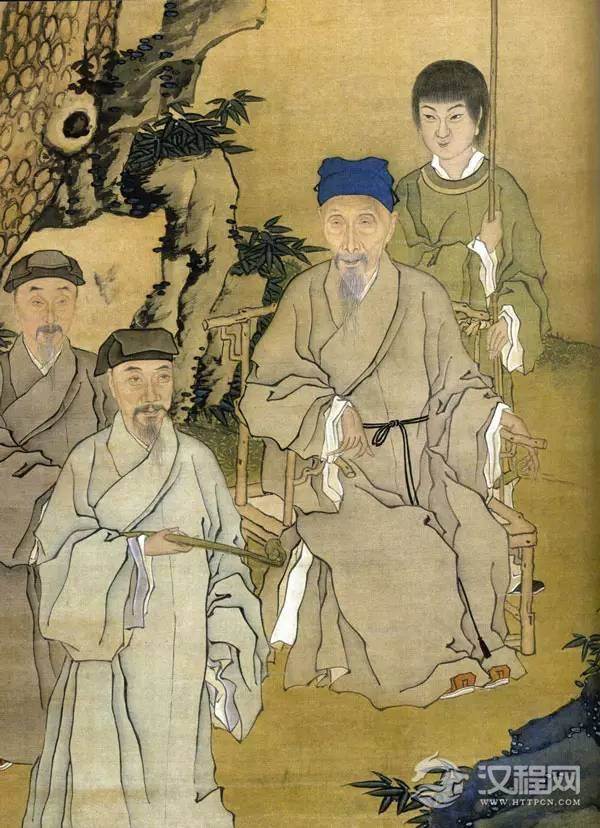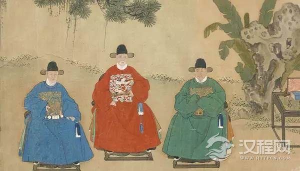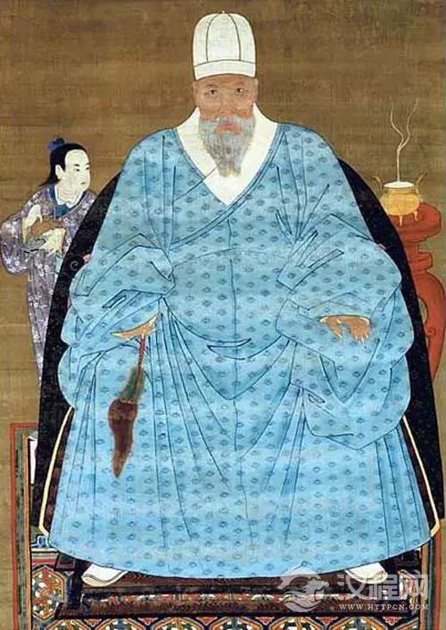 明代的儒士文人大多穿一身蓝色或黑色的长袍,也叫直裰,这种袍子衣身宽松,衣长一般到脚面、袖子肥大,袖长也一律过手,四周镶有宽边。与直裰相配的,通常是儒巾或四方平定巾。