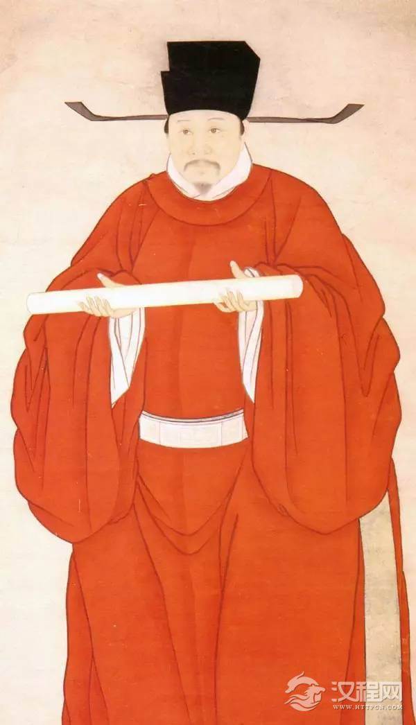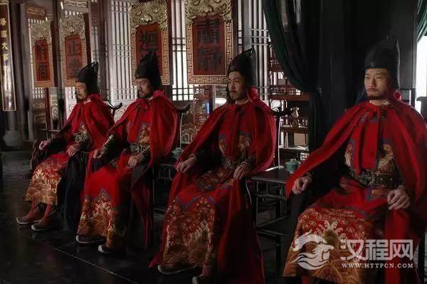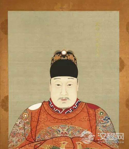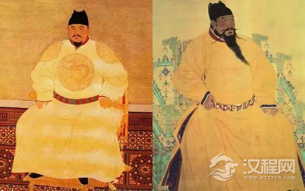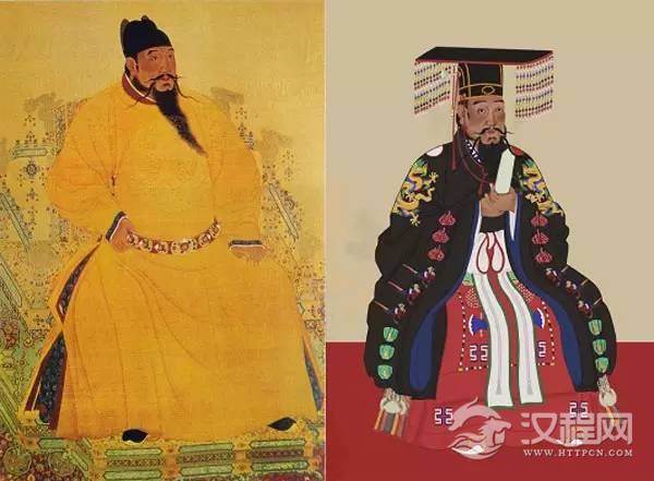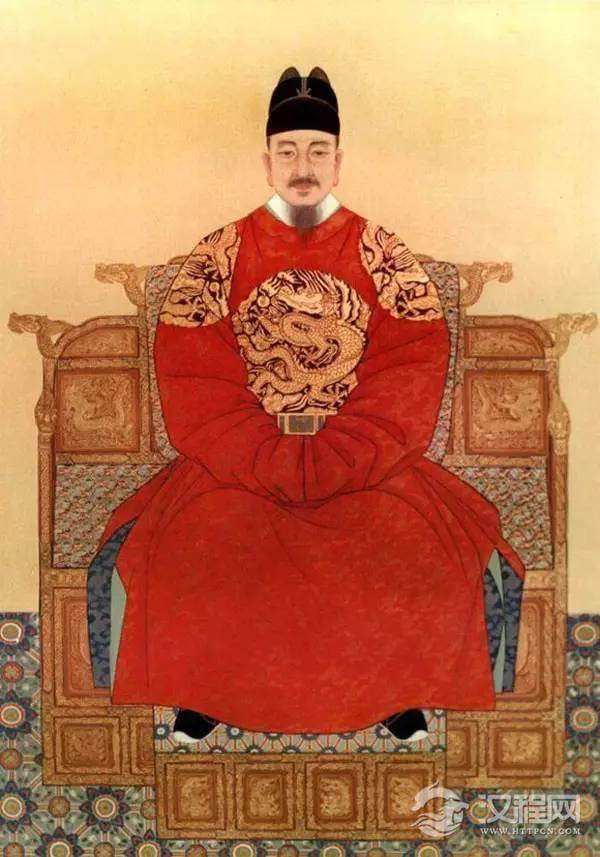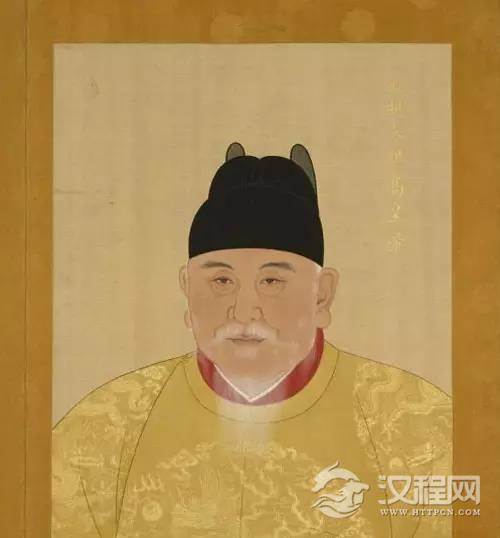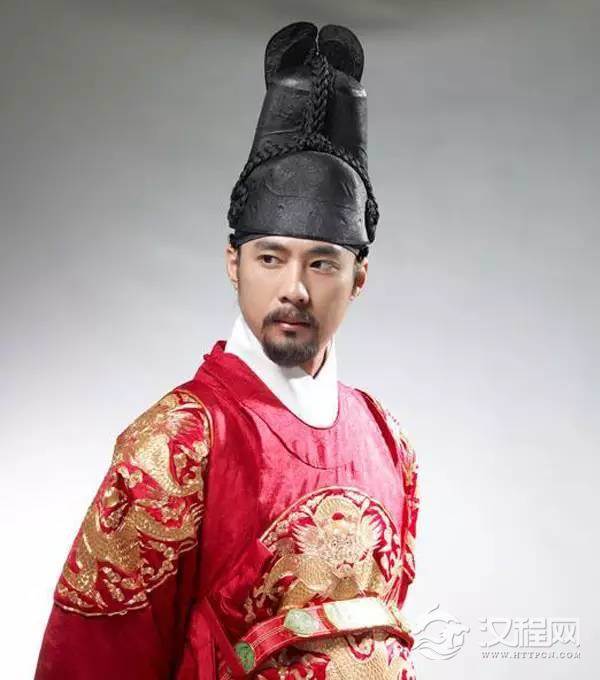 洪武皇帝所穿乃明前期皇帝常服,风格较明后期简洁,乌纱翼善冠+黄色团龙窄袖圆领袍+红色交领衣。