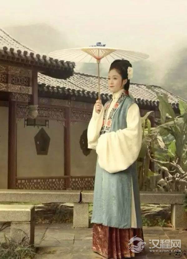 明代女子的衣裙在中国历代服饰中,样式最丰富、制作最精致,色彩搭配也最和谐。唐宋的襦裙、背子在沿用时,又增加了彩绣的云肩,是女子更加光彩照人。