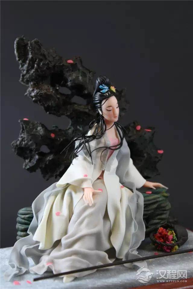 林黛玉的忧伤情怀、王熙凤的泼辣风采、杨贵妃的富贵华彩……,陶永广手下的美人不仅姿态各异,而且形神兼备,仿佛活的一般。只有12公分高的《贵妃醉酒》,惟妙惟肖。贵妃头戴凤冠的珠子仅有小米粒的四分之一大,贵妃身上所穿的“女蟒”颜色多达二十几种,全是用彩面所做。手拿大刀的关公,仅有花生米大小的脸,表情却不怒自威。