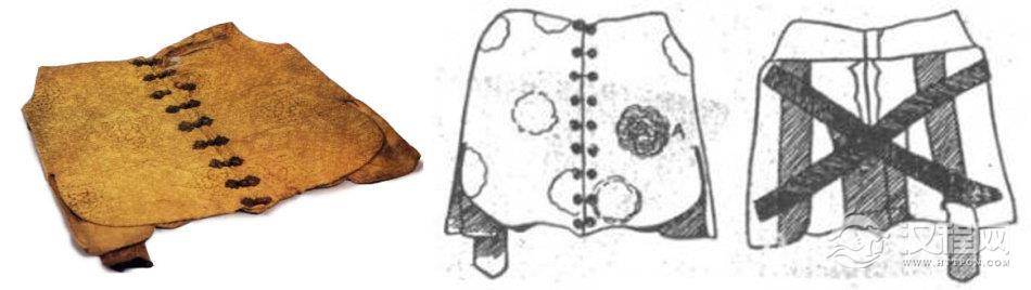 裲裆,俗称“两当”。汉刘熙《释名?释衣服》曰:“其一当胸,其一当背,谓之裲裆。”又《骈雅?释服食》:“裲裆,胸背衣也。”说明裲裆的形制简单概括为有前后两片衣襟,一片当胸,一片当背。腋下与肩上以襻扣之,男女均可穿着,既可穿着在衣服内部,也可着于外,且有绣、有棉、有夹,也有军事用的裲裆铠。